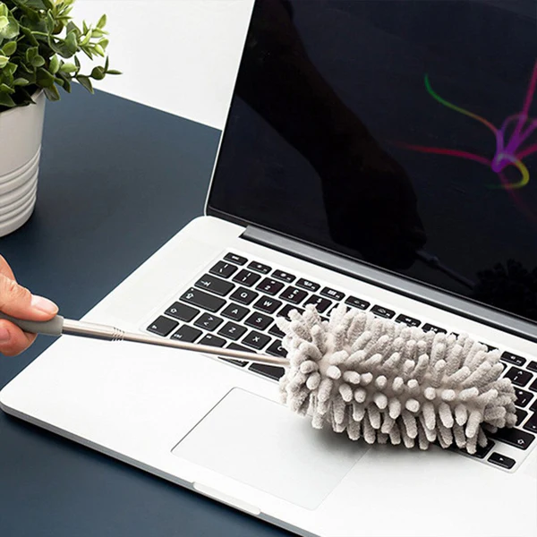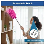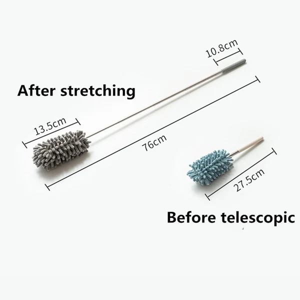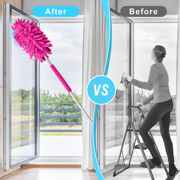Our duster has extension pole which can extend to 27 inches, made of stainless steel, rustproof. You can easily clean any high areas with no more need of chairs or dangerous ladders to climb.