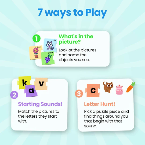 - Pick a puzzle piece and find things around you that begin with that sound.