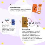 Solution: Create a puzzle with missing numbers that require simple addition or subtraction (e.g., 2, 4, __, 6). This encourages counting and basic math operations.