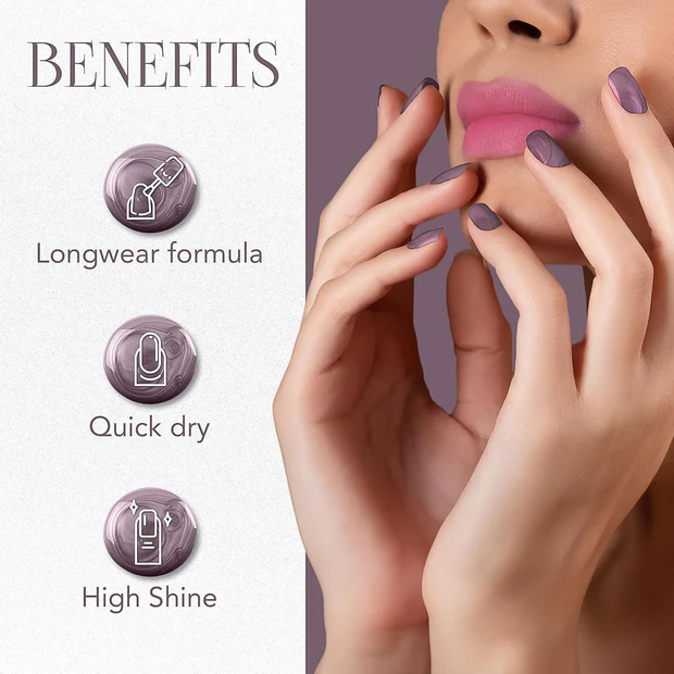 metallic nail polish, opal purple nail paint, high-shine nail polish, long-lasting nail color, glossy finish nail polish, quick dry nail paint, chip resistant nail polish, gold shimmer nail color, premium nail lacquer, purple metallic nail polish, salon quality nail paint, nail polish for home use, professional nail color, durable nail paint, OG Beauty nail polish