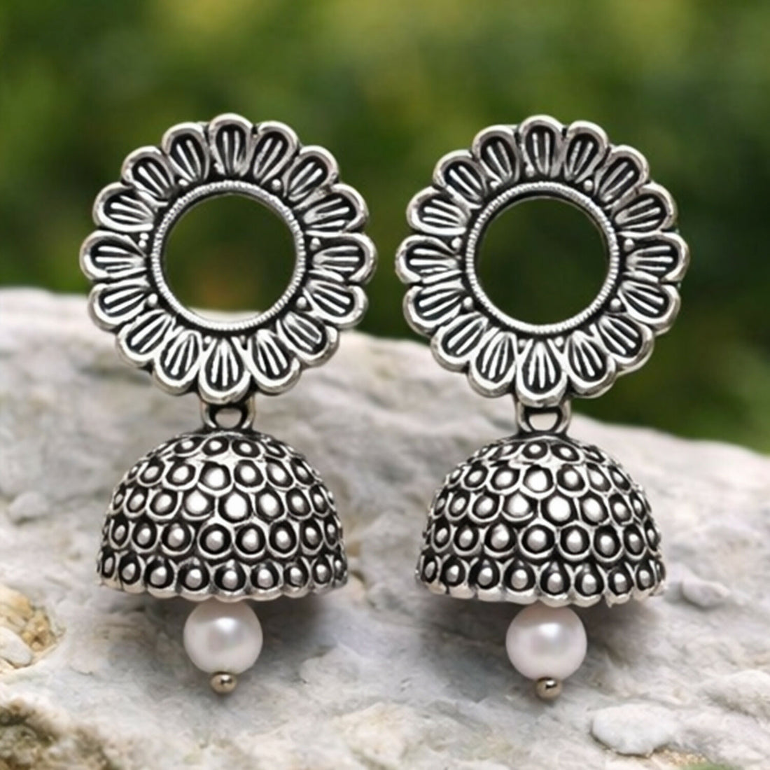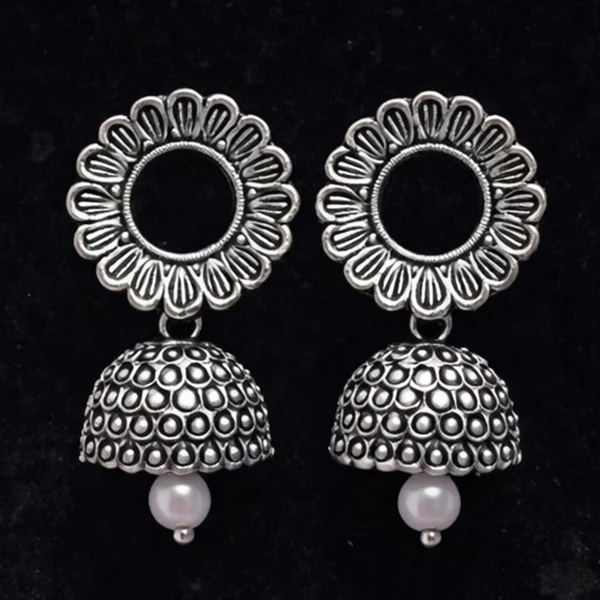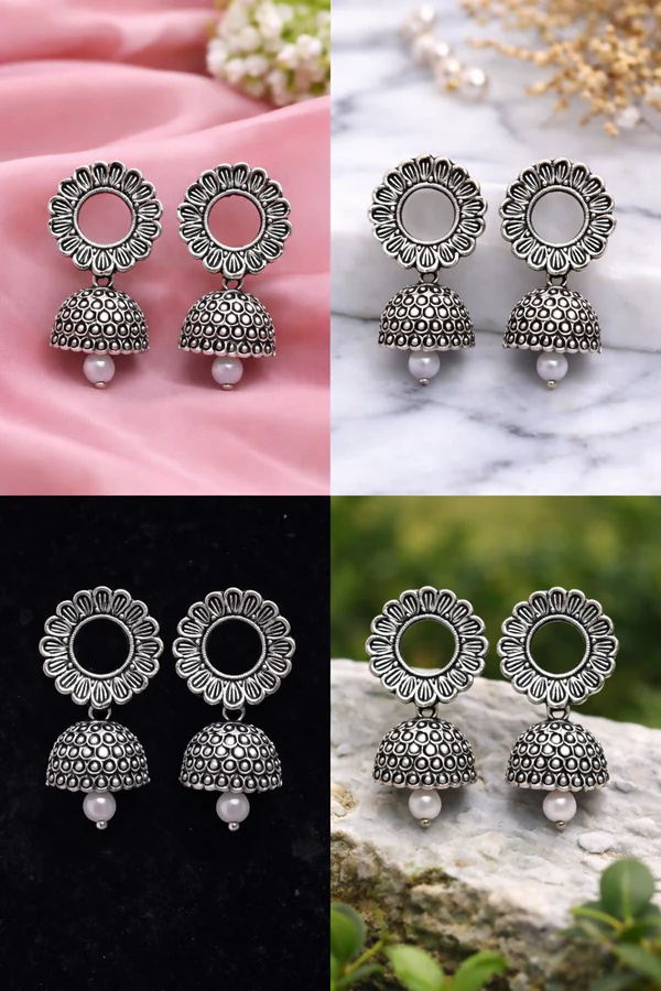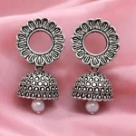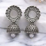 Oxidized Silver Floral Jhumka Earrings for Women – Traditional Ethnic Designer Jewelry