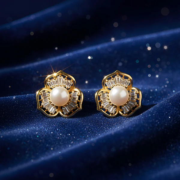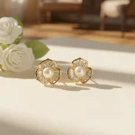 Be the first to review “Pearl Center Floral Stud Earrings with Crystal Detailing and Gold Finish” Cancel reply