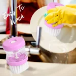 Dish / Washbasin Plastic Cleaning Brush with Liquid Soap Dispenser – 2pc