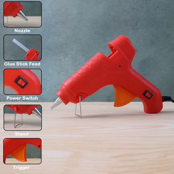 Premium 20W Hot Melt Glue Gun with 6 Transparent Glue Sticks – Fast Heating & Easy Trigger Control for Crafts, DIY, Repairs, and Home Projects
