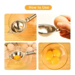egg separator, stainless steel egg separator, yolk and white separator, kitchen egg tool, baking egg separator, cooking egg tool, meal prep egg separator, cooking accessory, egg separating tool, baking utensil, kitchen prep tool, multi-purpose egg separator, food prep tool, stainless egg separator