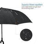 • SUPERIOR RAIN RESISTANT: The Canopy is made by 210T Pongee fabric which makes it good waterproof performance. The Reverse travel umbrella protects you in a drenching downpour with a high quality canopy coated with waterproof technology. Water won’t soak through but instead beads up and bounces off, preventing the leakage you get with other umbrellas.