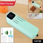 Upgrade your kitchen storage system with this rechargeable electric vacuum sealer designed to preserve freshness and reduce food waste. Equipped with a smart LED digital display and multi-function buttons for vacuum sealing, temperature control, and single sealing, this compact yet powerful tool ensures airtight storage in just seconds. The device includes 6 reusable vacuum bags and sealing accessories, offering a complete food packaging solution for home use. Its built-in rechargeable battery allows cordless operation while in use but requires recharging and is not portable outside a charging setup.