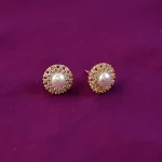 Be the first to review “Round Pearl Stud Earrings with Crystal Border and Gold Finish for Women” Cancel reply