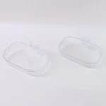 Self Adhesive Transparent Wall Mounted Soap Dish Holder with Drain Holes – Oval Ribbed Design – Reusable Bathroom Storage Tray – Pack of 2