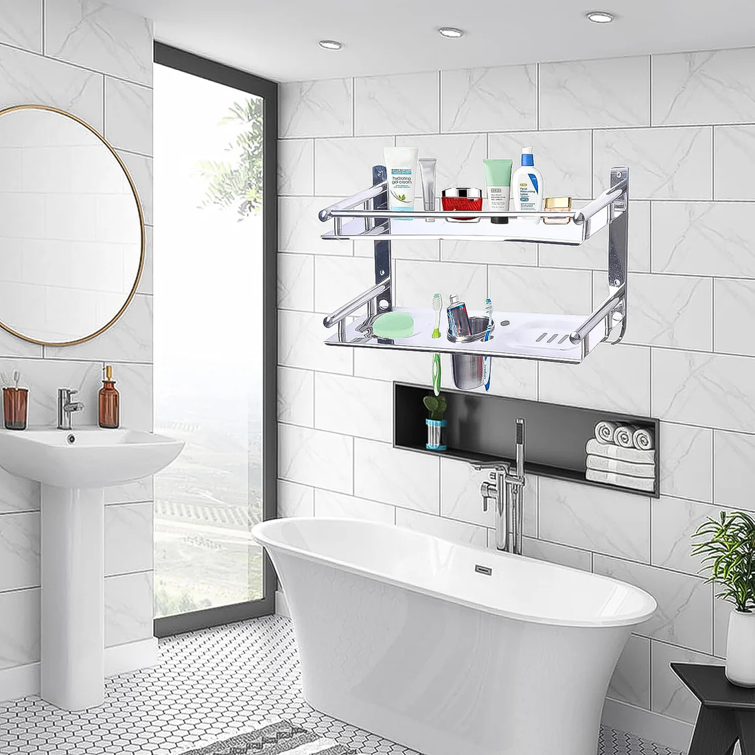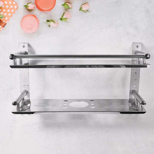 - 𝐒𝐭𝐚𝐢𝐧𝐥𝐞𝐬𝐬 𝐒𝐭𝐞𝐞𝐥 𝐌𝐮𝐥𝐭𝐢-𝐮𝐬𝐞 𝐑𝐚𝐜𝐤 / Bathroom Shelf / Kitchen Shelf / Bathroom Stand / Bathroom Rod / Bathroom Accessories Stainless Steel Wall Shelf (Number of Shelves – 2, Silver) Silver Towel Holder(Steel)