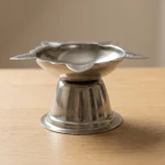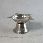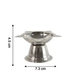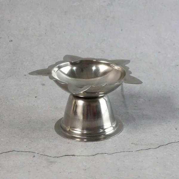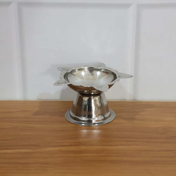 This stainless steel sunflower diya stand is beautifully crafted to enhance the spiritual ambiance of your home temple or pooja area. Designed with a wide diya bowl and a sturdy elevated base, it ensures stable placement while holding oil or ghee securely during worship rituals. The sunflower-inspired shape adds a traditional yet elegant touch, making it suitable for both daily prayers and festive occasions. Its polished finish reflects light gracefully, creating a serene and divine atmosphere during aarti and pooja ceremonies.