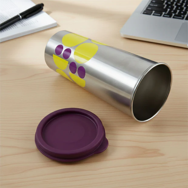 This stainless-steel tumbler is designed for convenient everyday beverage use, offering a practical and stylish solution for enjoying hot or cold drinks. The slim cylindrical shape makes it easy to hold and carry, while the fitted lid helps reduce spills during use. Its printed exterior adds a modern touch, making it suitable for desks, workspaces, and daily routines. The sturdy build ensures long-term usability, making it a dependable choice for home, office, and travel needs.