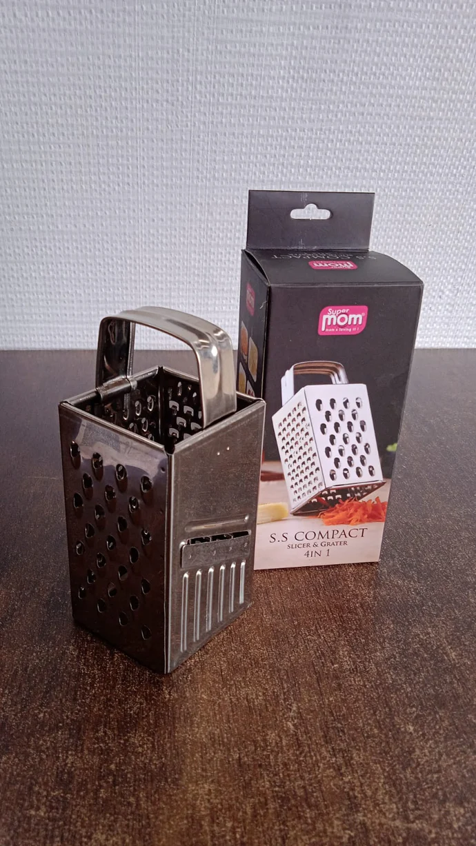 Supermom Premium Stainless Steel 4-in-1 Compact Grater and Slicer – Multipurpose Kitchen Tool for Cheese, Vegetables, Fruits, and Food Preparation
