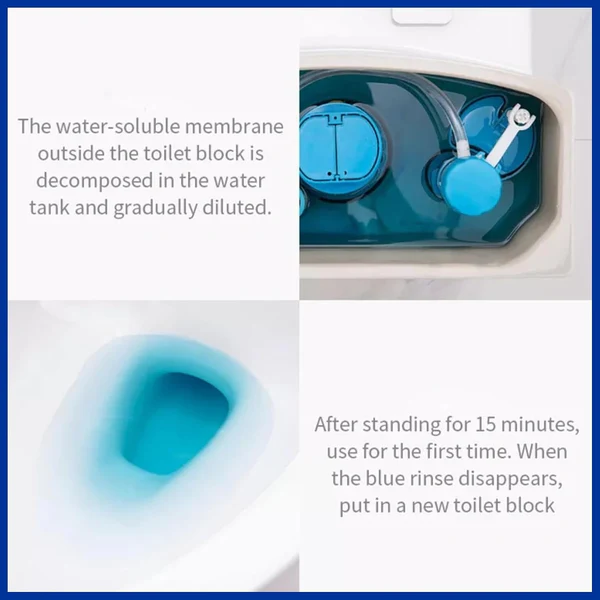 - FLUSH IT. To activate, wait for 10 minutes to let the block mix, before the first flush.
