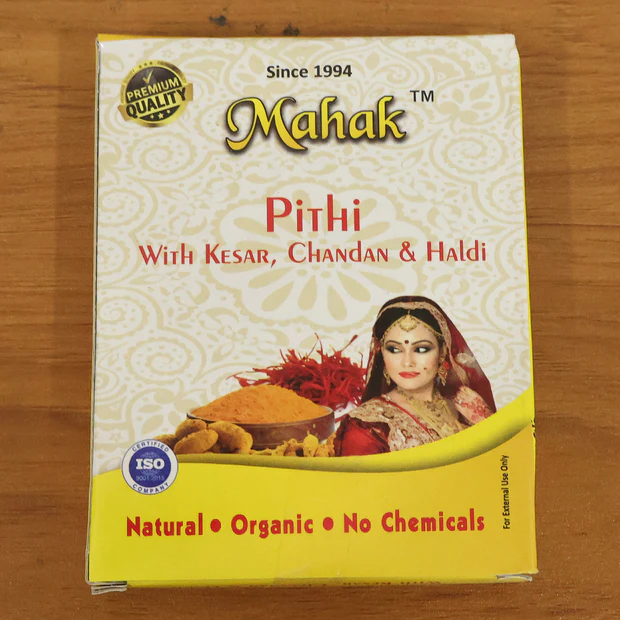 This Face and Body Mahak Pithi is a traditional skincare preparation commonly used in personal grooming and pre-bath skincare rituals. It is specially formulated for face and body application and is widely associated with ceremonial, festive, and routine skincare practices. Traditionally applied before bathing, pithi helps cleanse the skin surface and prepares it for washing.