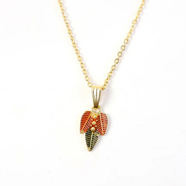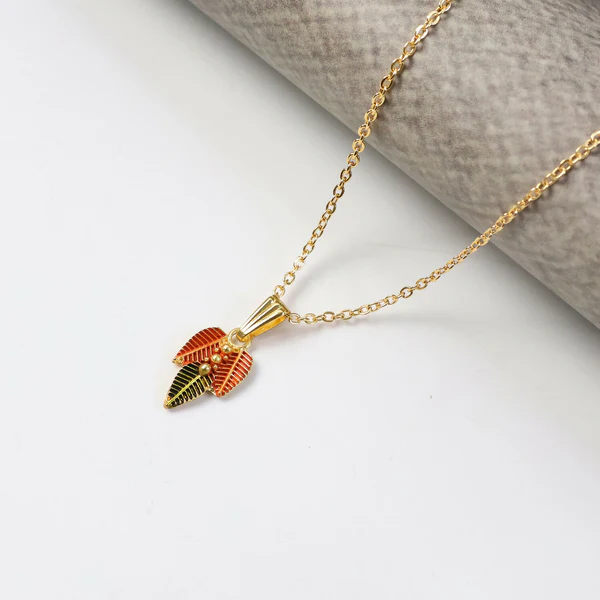 Traditional Leaf Design Pendant Necklace with Chain for Women