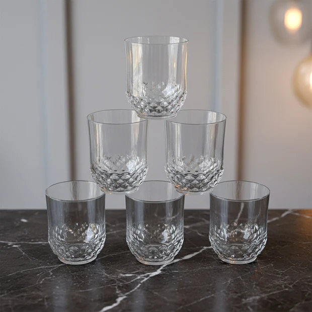 This reusable drinking glass set features an elegant diamond-pattern surface that enhances the visual appeal of everyday beverages. Designed for regular use, these glasses provide a comfortable grip and a balanced structure suitable for daily serving needs. The crystal-style texture adds a refined look while remaining practical for both indoor and outdoor environments. Easy to maintain and simple to store, these glasses are ideal for serving water, juice, soft drinks, and other refreshments during meals or gatherings. Their durable construction supports repeated use without compromising appearance or functionality.