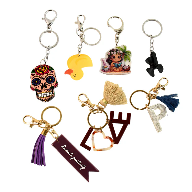 Add a dash of personality to your everyday essentials with this stylish collection of assorted designer keychains. Each pack contains 1 piece in a mix of designs, including alphabet charms, animated characters, motivational quotes, tassels, and more. Crafted from high-quality materials like acrylic, alloy, and resin, these keyrings are both eye-catching and durable.