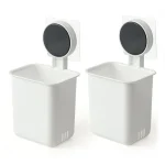 This wall mounted bathroom storage organizer cup set is designed to keep daily essentials neatly arranged while saving valuable counter space. Featuring a clean, modern design, these organizer cups easily mount on smooth wall surfaces using a strong adhesive backing, eliminating the need for drilling. Each holder is ideal for storing toothbrushes, toothpaste, makeup brushes, skincare tubes, and small bathroom accessories in an organized and hygienic way. The open-top design allows quick access and easy cleaning, making it a practical solution for both bathrooms and dressing areas. Supplied in a convenient 2-piece set, this organizer enhances functionality while maintaining a clutter-free look.