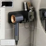 wall mounted hair dryer holder, hair dryer storage rack, bathroom hair dryer organizer, wall mount dryer shelf, multipurpose bathroom organizer, hair styling tool holder, bathroom storage hook, hair dryer hanging rack, dressing area organizer, wall mount bathroom shelf, hair dryer and accessory holder, space saving bathroom rack