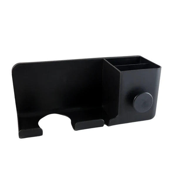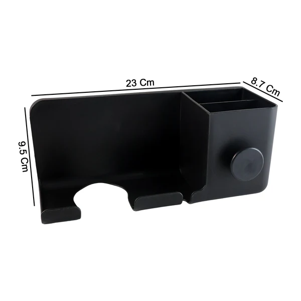 This wall mounted hair dryer holder is designed to keep styling tools neatly organized while saving counter space in bathrooms and dressing areas. The structured holder allows safe placement of a hair dryer along with additional sections for storing grooming accessories. Its wall mount design helps reduce clutter and keeps frequently used items easily accessible. Suitable for daily use, this organizer enhances cleanliness and convenience while maintaining a modern and organized appearance. Ideal for personal grooming spaces, it offers a practical storage solution without occupying surface areas.