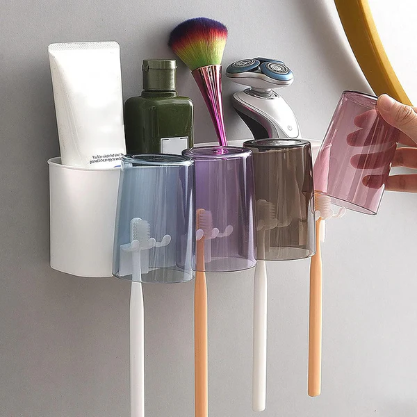 Wall mounted toothbrush holder set, toothbrush holder with inverted cups, bathroom toothbrush holder organizer, wall mounted toothbrush and toothpaste holder, multi slot toothbrush organizer, inverted cup toothbrush holder, bathroom storage organizer stand, toothbrush holder for family, wall mounted bathroom organizer