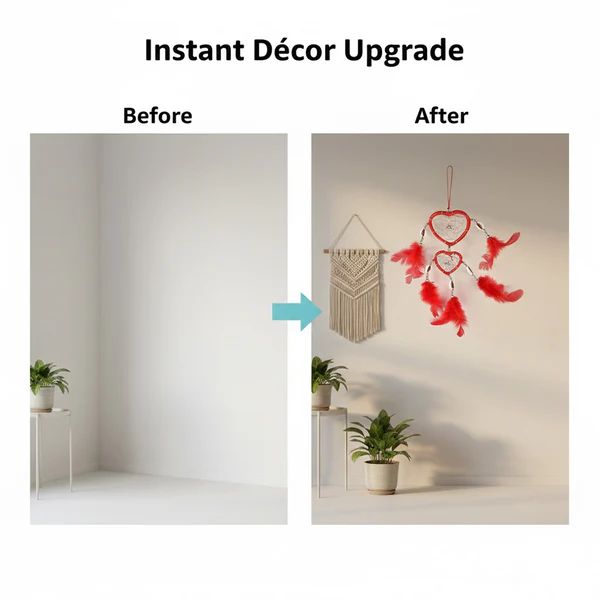 sleep charm, negative energy blocker, spiritual decor, wall charm, living room ornament, car mirror hanging, spiritual gift item,heart dream catcher,feather wall hanging, red dream catcher, heart charm with feathers