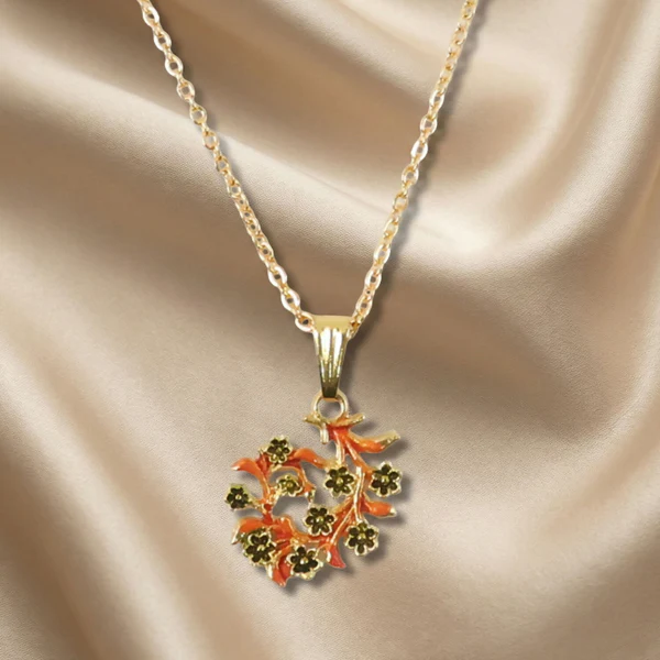 Traditional Leaf Design Pendant Necklace with Chain for Women