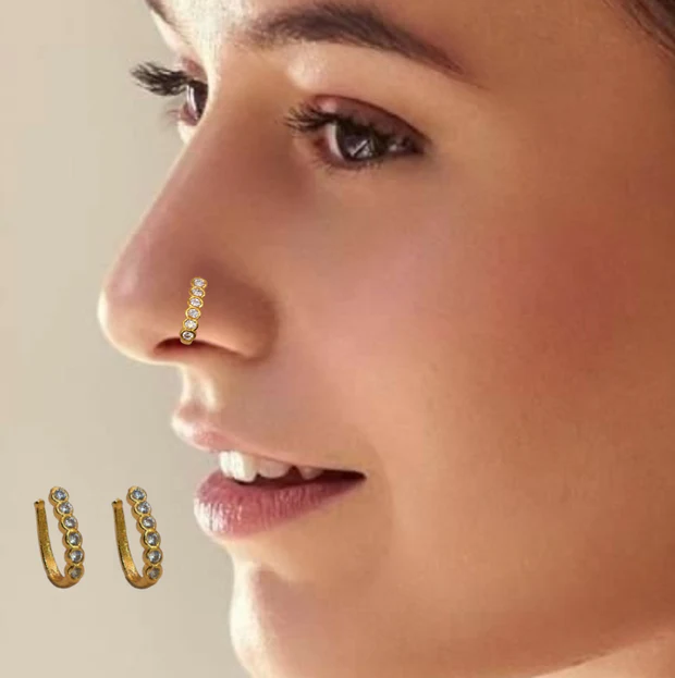 Wavy Diamond Clip-On Nose Ring | Gold Plated AD Non-Pierced