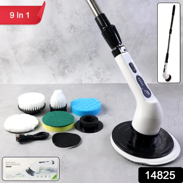 9 In 1 Rechargeable Electric Spin Scrubber with Telescopic Handle (1 Set)